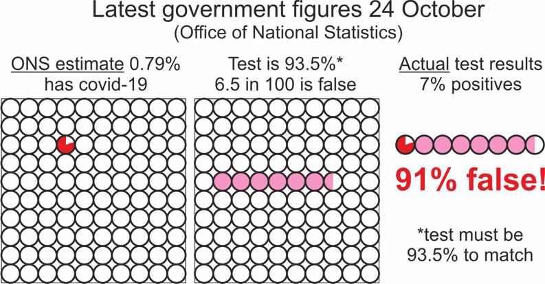 If the ONS estimate of infections is correct, it would entail a very low specificity (93.5%) that has dropped from 99% at the beginning of September. I have already commented on this, suggesting that the tripling of number of tests at that time has led to poor quality control in the laboratories and/or using too many cycles.