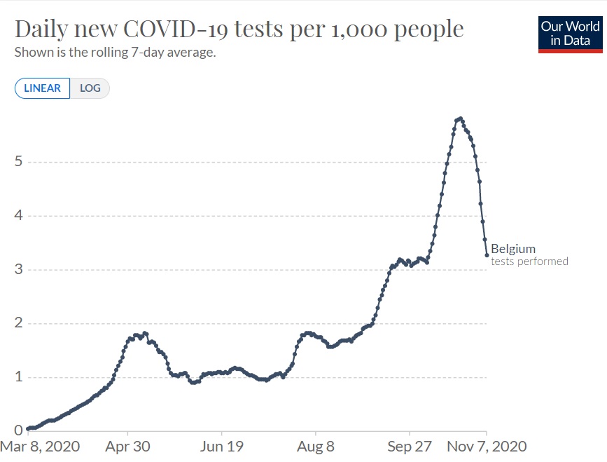 Belgium reduced their testing. R rate plummets as a direct results. Deaths too.